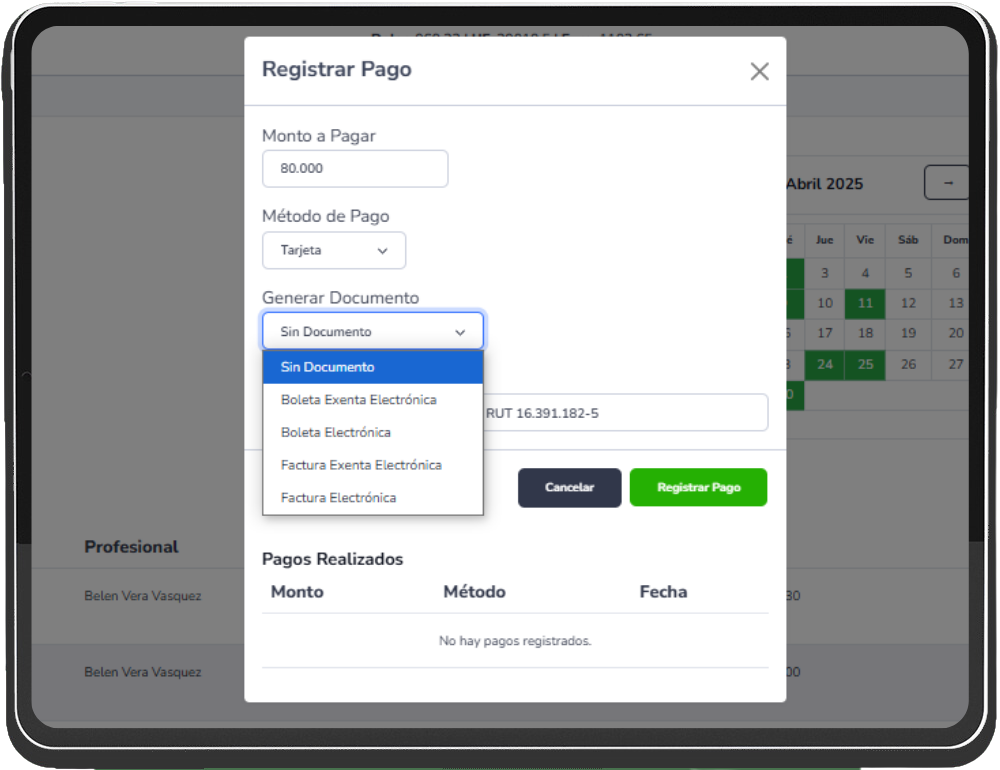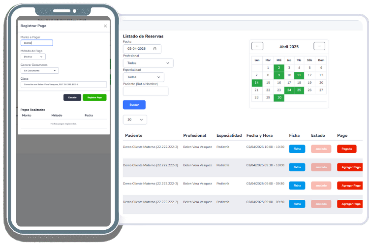 realicen pagos de forma rápida, sencilla y segura desde la misma plataforma en la que reservan su cita. Ya no necesitas complicarte con múltiples sistemas o cobros presenciales. Acepta pagos previos para confirmar citas y reduce la morosidad. Además, todos los pagos están protegidos bajo altos estándares de seguridad, garantizando tranquilidad tanto para ti como para tus clientes.